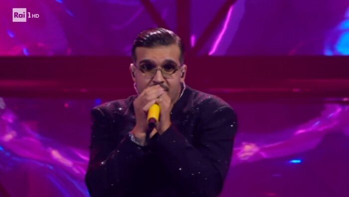 GEOLIER: Geolier in Emporio Armani porta Napoli sul palco, con i suoi stereotipi di ragazzo dei quartieri che emergono in tutti i suoi brani. Lo fa brillando grazie alla miriade di brillanti sul suo completo, anche in questo caso total black. “I p’me, tu p’ me”, ritornello che non lascerà più il nostro cervello dopo questa prima serata.
