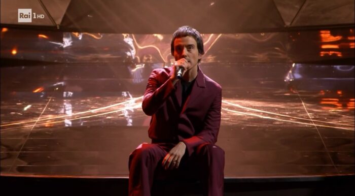 DIODATO: La finezza è incarnata da quest’artista. Indossa sul grande palcoscenico un completo classico in bordeaux. In sintesi: si può colpire anche con la semplicità.
