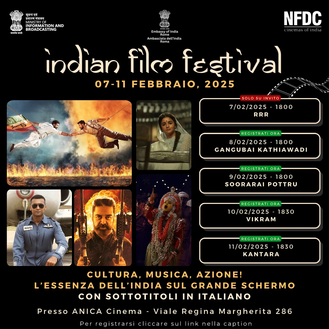 Promosso e coordinato dall’Ambasciata Indiana a Roma, il Festival, realizzato in partnership con Anica, si comporrà di 5 film, tutti nelle lingue originali come Hindi, Telugu, Tamil e Kannada, con i sottotitoli in italiano e inglese, che daranno un assaggio del patrimonio culturale e linguistico dell’India, oltre ad un inevitabile focus sulle tematiche sociali.
