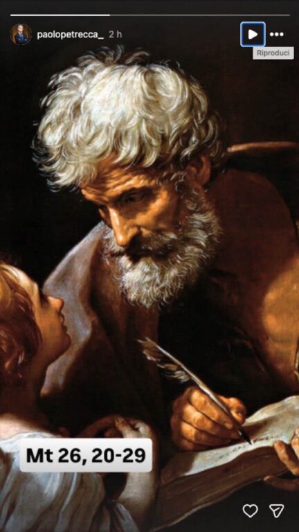 Dopo la comunicazione da parte della Rai, Petrecca si è astenuto da dichiarazioni ufficiali ma non ha resistito ad una puntura tramite una storia pubblicata su Instagram. In immagine con l’apostolo Matteo e con un riferimento ai versetti 26, 20-29 del Vangelo a chiamato in ballo l’Ultima cena dove Gesù annuncia agli apostoli: “In verità io vi dico, uno di voi mi tradirà”. E’ aperta la caccia al Giuda Iscariota della Rai.