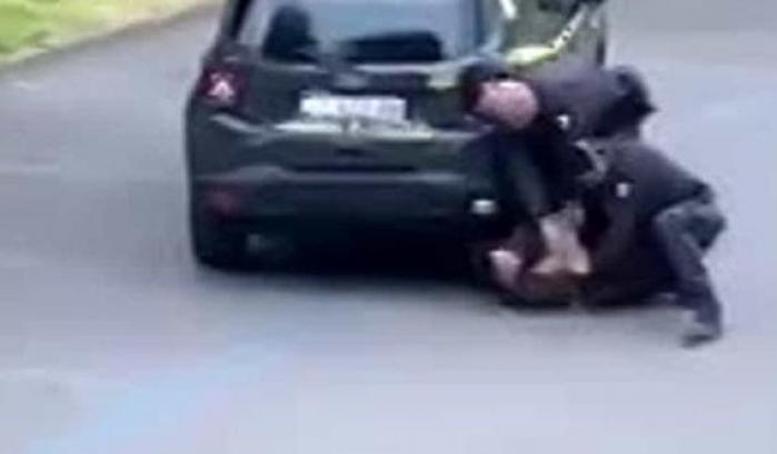 Il video però mostra ben altro: Denis inizialmente è fronteggiato dal poliziotto e poi gli dà le spalle, per allontanarsi. Il poliziotto a quel punto gli salta letteralmente addosso, prendendolo di sorpresa, e gli blocca il collo. Non c’è nessuna richiesta di documenti, o almeno non è udibile, e comunque non c’è il tentativo di prendere la mano di Denis, come non è vero che il ragazzo si sia divincolato o abbia fatto resistenza. Ha fatto resistenza quando il poliziotto gli è saltato addosso alle spalle, ma chi non l’avrebbe fatto?
