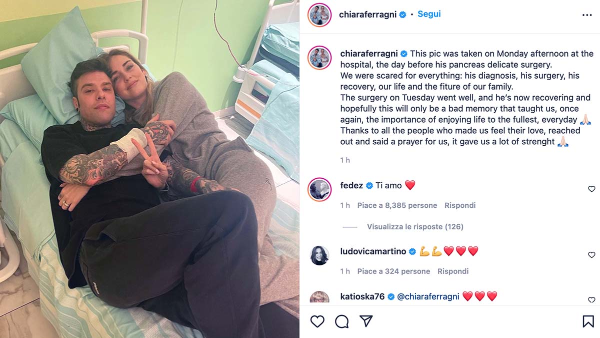 L’hanno annunciato in una storia sul profilo Instagram del rapper, in cui hanno spiegato la situazione: lui e la moglie sono asintomatici, mentre i due figli Vittoria e Leone sono negativi. «Ci siamo testati ogni giorno per essere sicuri», ha detto Chiara Ferragni, «ieri abbiamo fatto un molecolare e siamo risultati positivi.