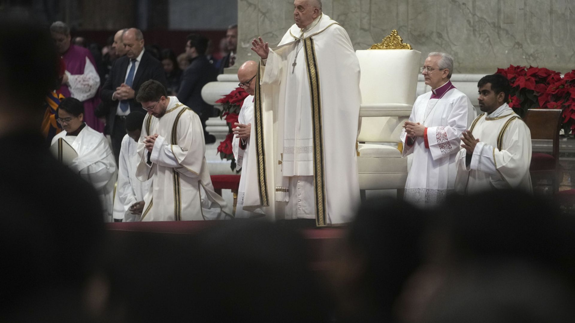 Vaticano / Si rompe il bastone mentre il Papa entra all'udienza generale: gli assistenti sostengono Francesco