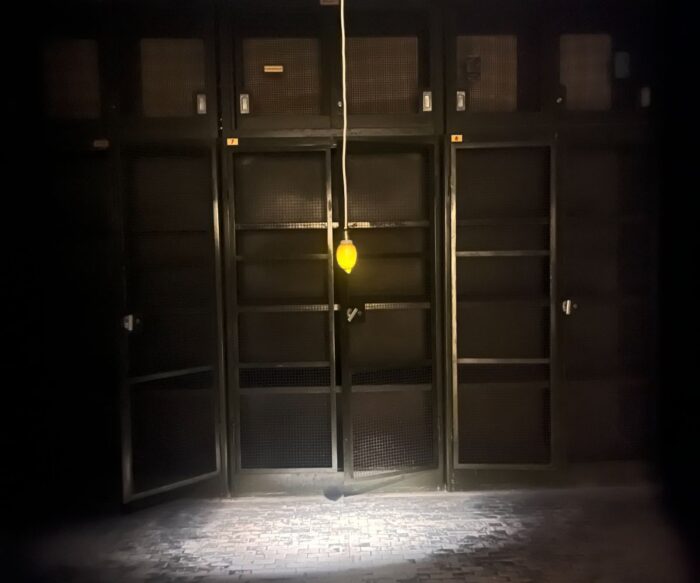 In un vero caveau, allestito in uno degli snodi principali della mostra, si ammira la celebre Lampadina Limone: sola, gialla nel buio totale, colpita da un unico fascio di luce. Un’immagine semplice e potentissima, che trasforma l’opera in gioiello da custodire in quanto potente metafora della capacità creativa. Uno spazio nel quale ci si potrebbe smarrire se non si fosse guidati da qual raggio che avvolge l’opera.