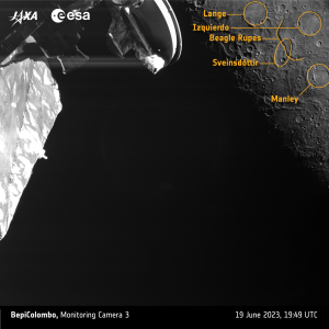 All’estrema destra dell’immagine è visibile anche un nuovo cratere d’impatto chiamato Manley, in onore dell’artista giamaicana Edna Manley, pochi giorni prima del flyby di BepiColmbo.