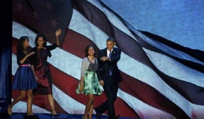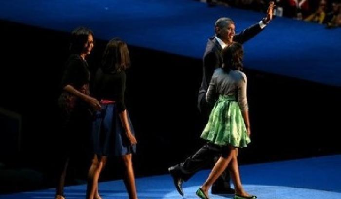 «Lasciatemelo dire in pubblico: non ti ho mai amato così tanto». Così Barack Obama, si è rivolto alla moglie Michelle, invitandola sul palco, durante il discorso tenuto dopo la rielezione a Chicago. «Sono orgoglioso di come l’America ami mia moglie», ha aggiunto Obama.